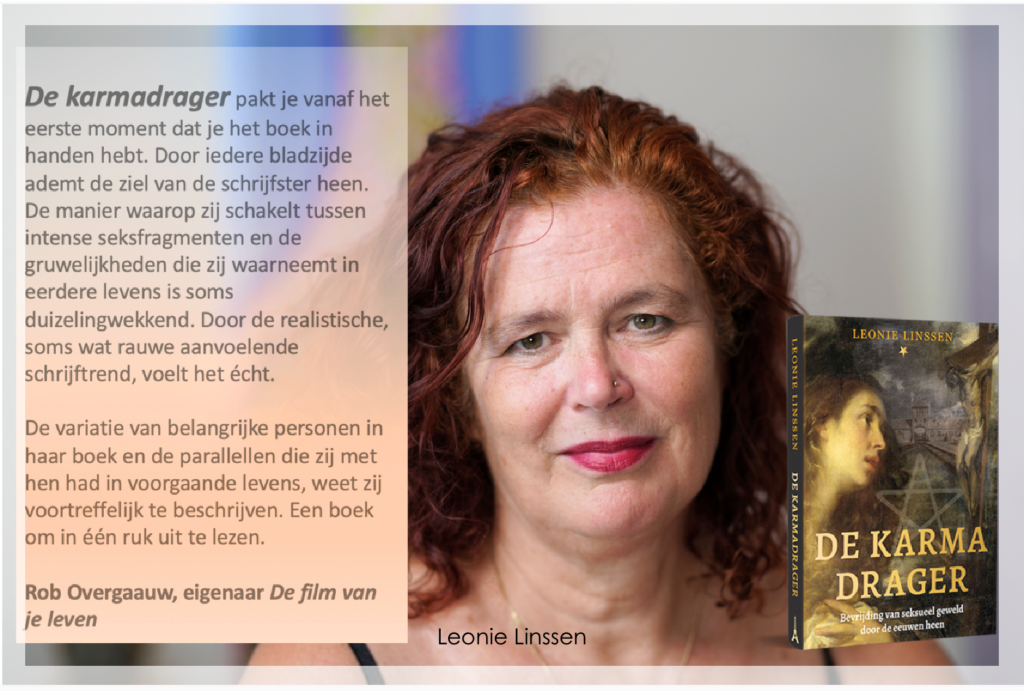 Deze herinnering verklaart de diepe angst voor ‘het systeem’ die ik ook in mijn vorig leven in Auschwitz ervoer. Hier werd ik gedwongen mee te werken aan een systeem van ontmenselijking, en te assisteren bij de onmenselijke proeven die kamparts Mengele deed op baby’s en kinderen. In dat leven stierf ik van uitputting in een barak, samen met andere zieke gevangenen, net voor de bevrijding van Auschwitz. Ik schreef er een boek over: De Karmadrager.
